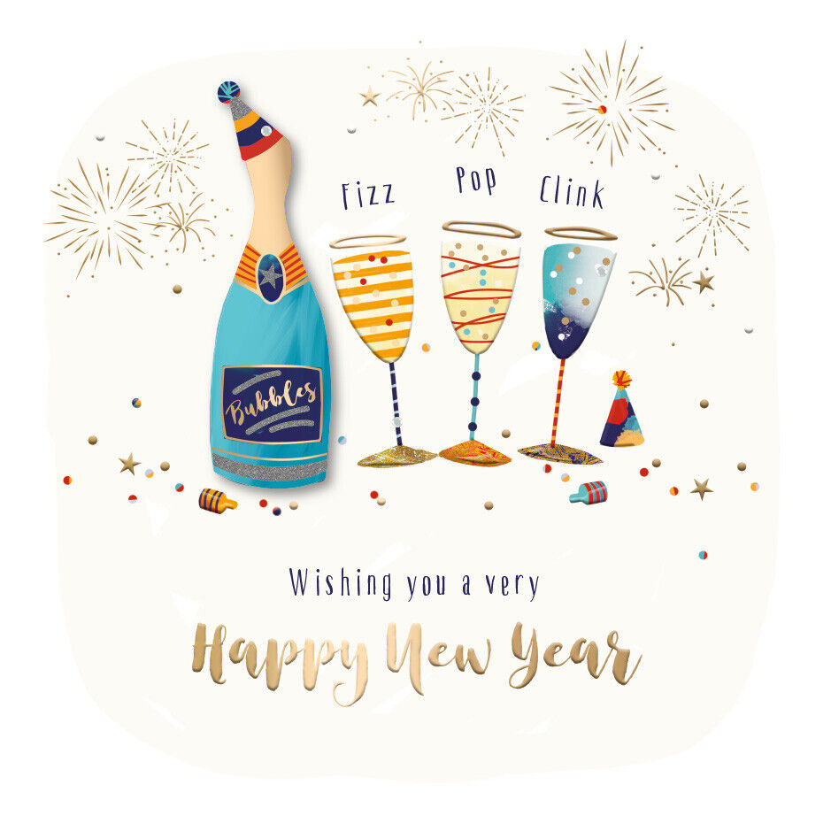 Happy New Year Bubbles Embellished Christmas Greeting Card Special Xmas Cards