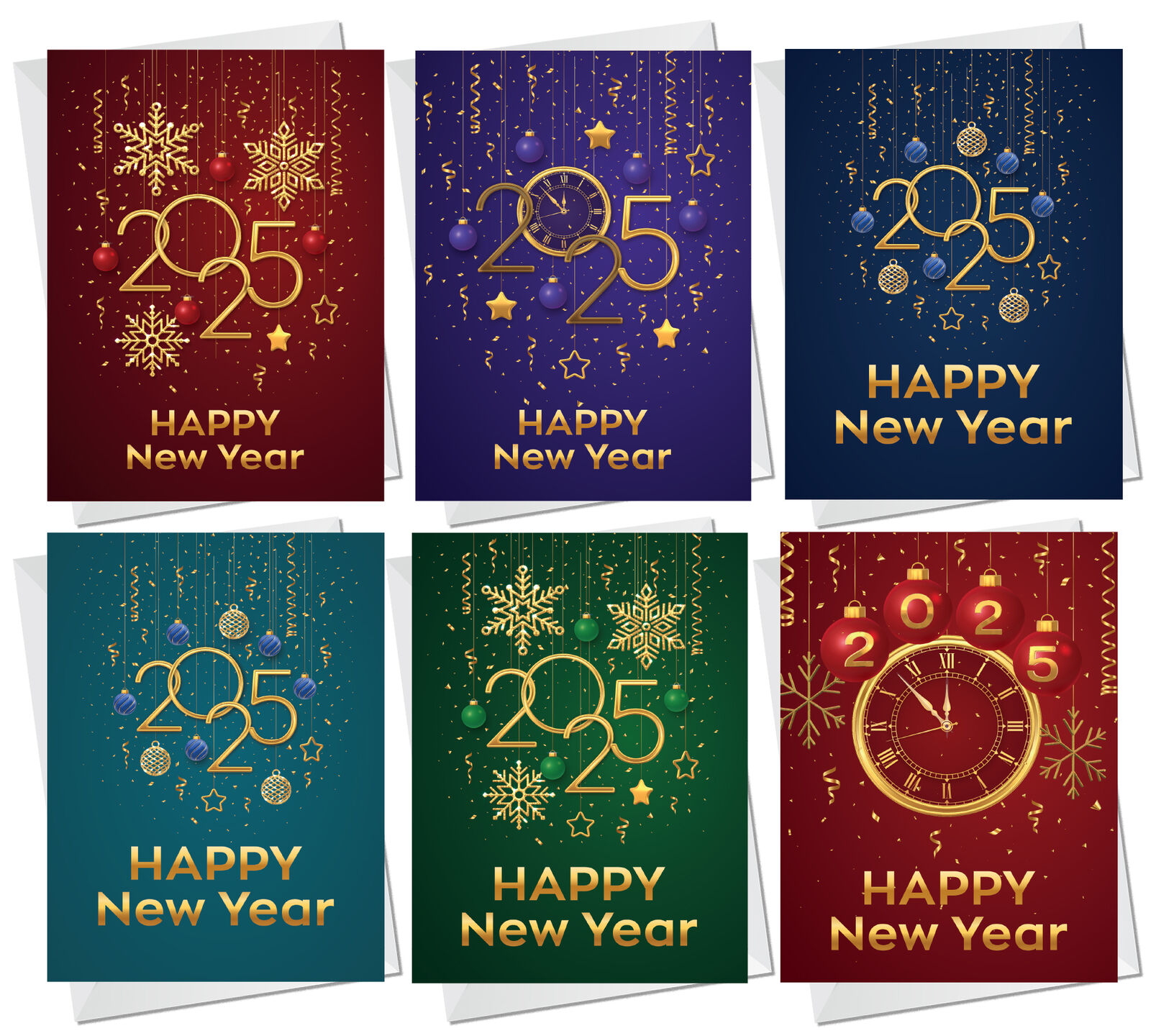 Happy NEW YEAR 2025 Cards pack of 9, Happy New year 2025 pack of 9 cards