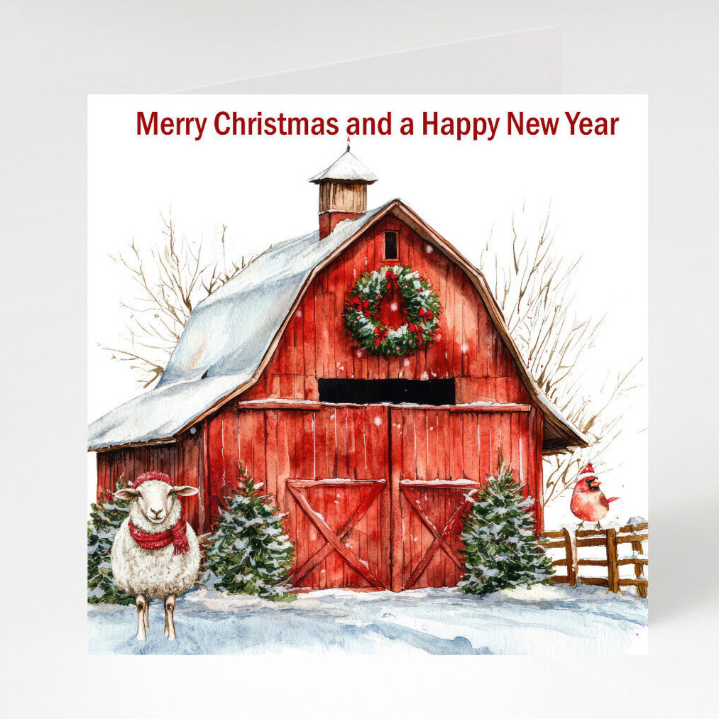 Happy NEW YEAR 2026 , Merry Christmas Farm Yard Sheep cards pack of 6