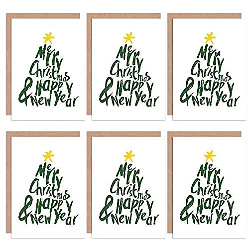 Christmas Cards Merry Christmas Happy New Year Tree Set Xmas Blank Greeting Cards With Envelopes Pack of 6