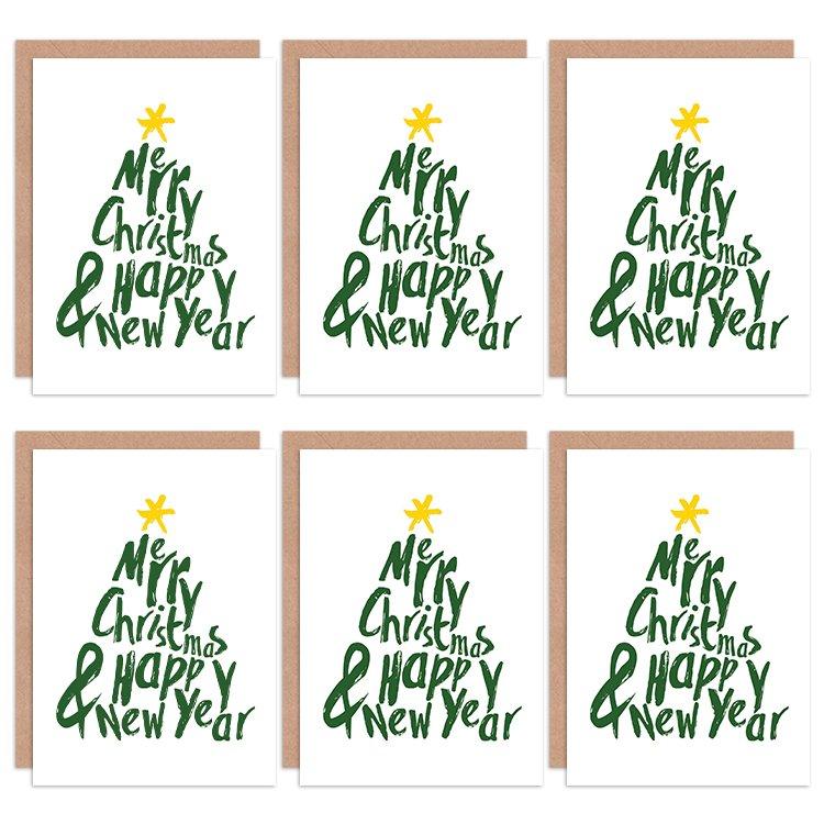 Christmas Cards x6 Merry Christmas Happy New Year Tree Set Xmas XMPACK029_CP