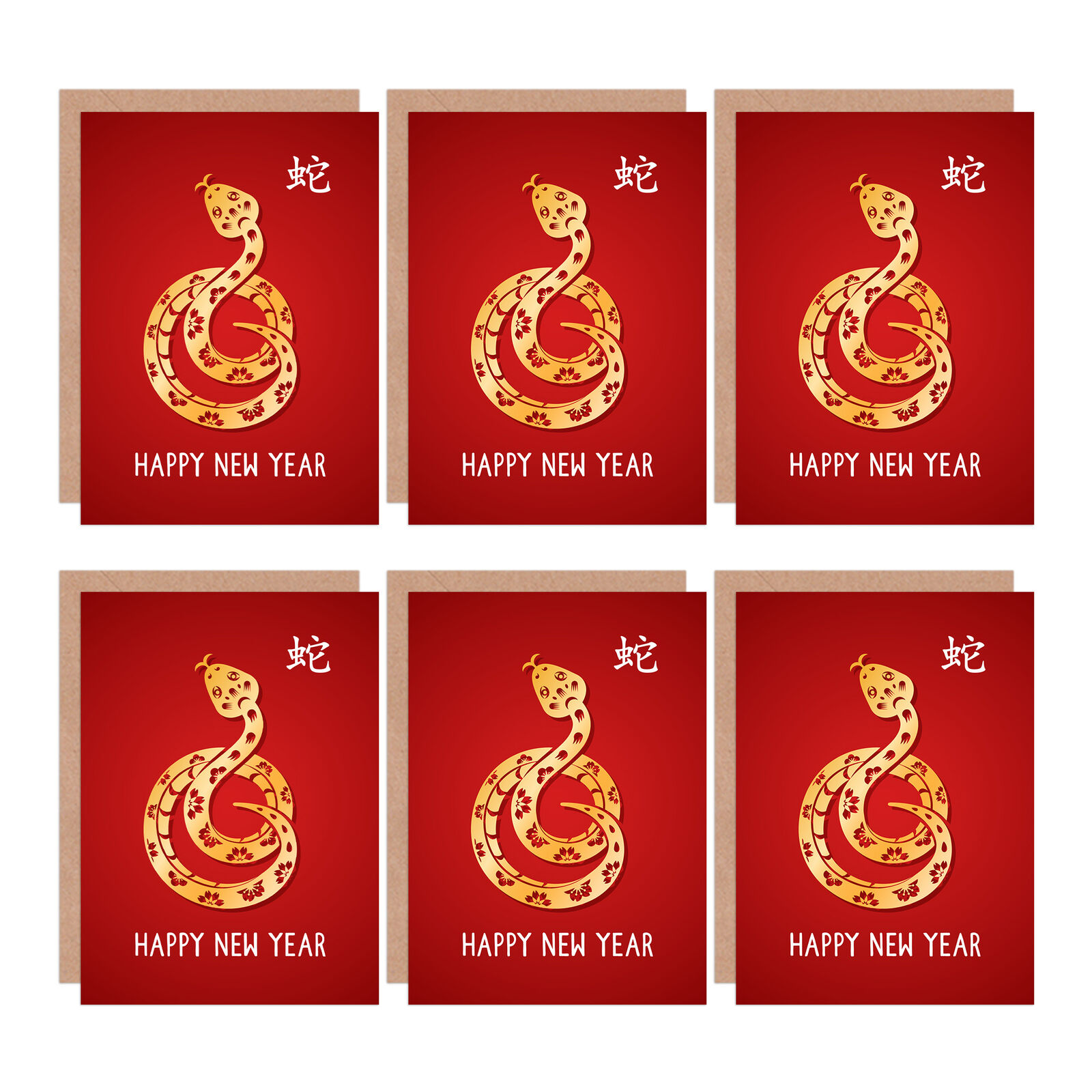Chinese New Year Lunar Year Of The Snake Happy New Year Greeting Cards 6 Pack