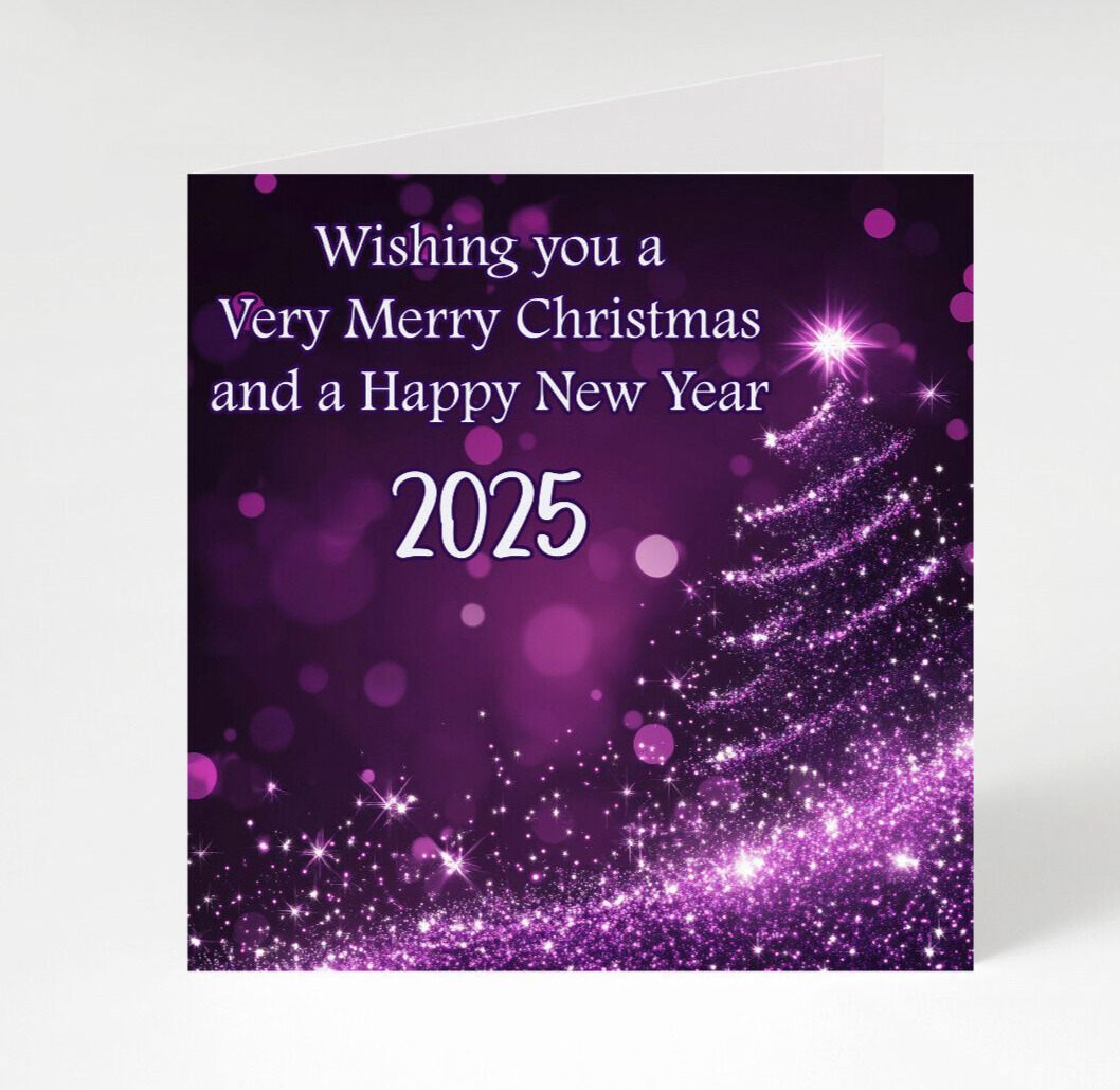 Happy NEW YEAR 2025 , Merry Christmas cards pack of 7, Purple cards pack of 7