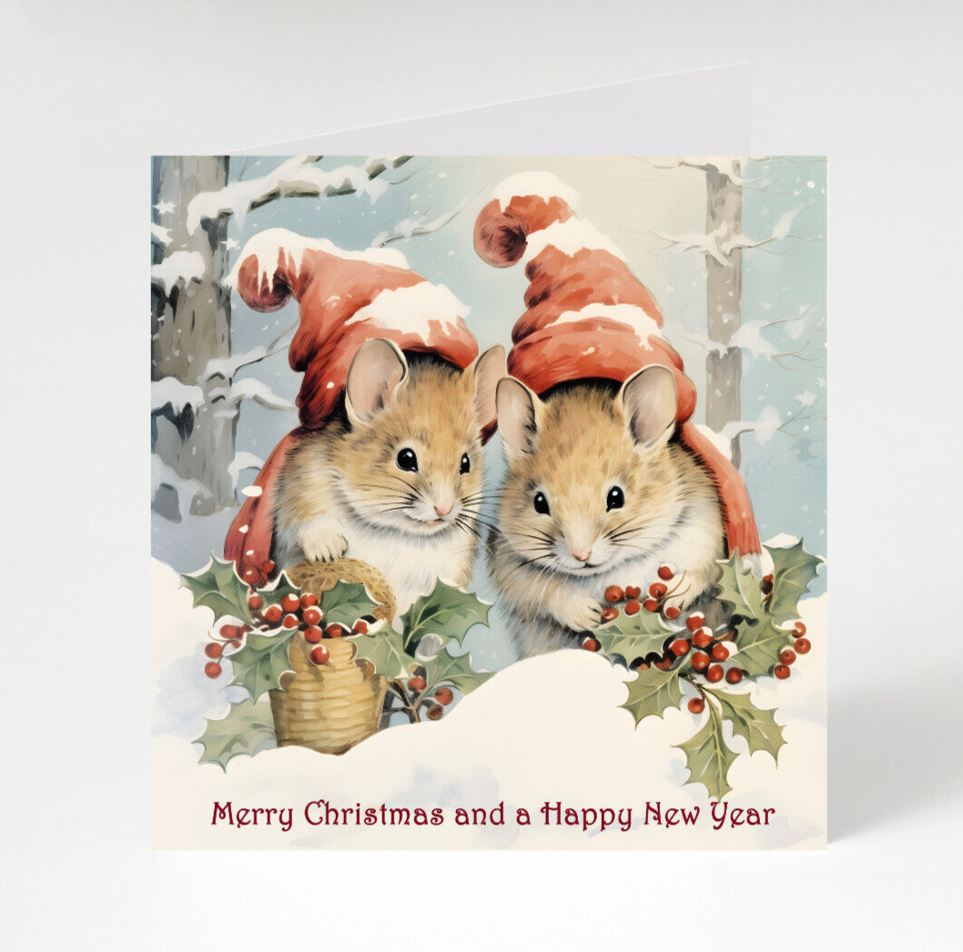 Personalised Mice Merry Christmas and Happy New Year card, Pack of 7 cards