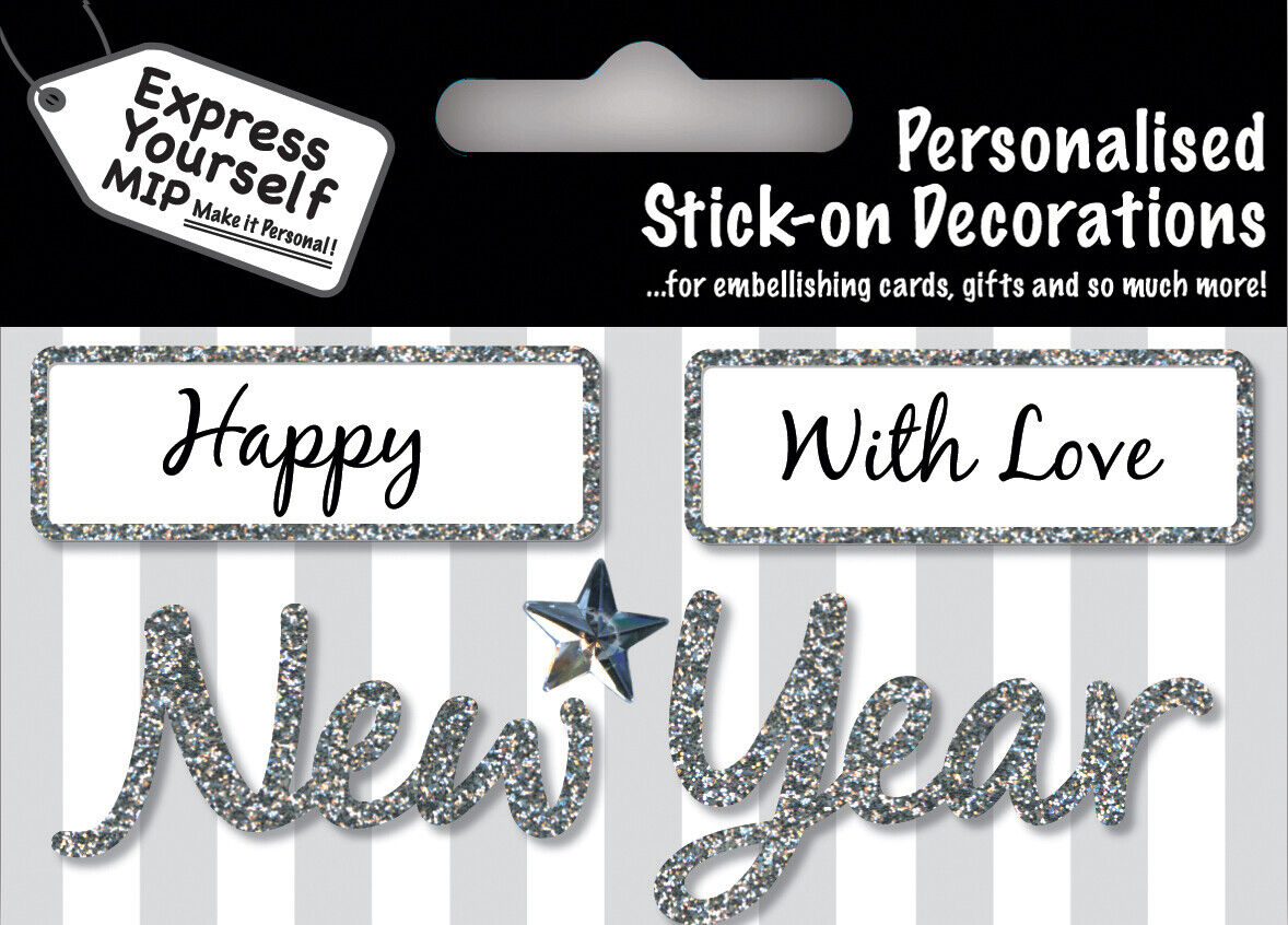 Silver Happy New Year DIY Greeting Card Toppers Personalise Handmade Cards