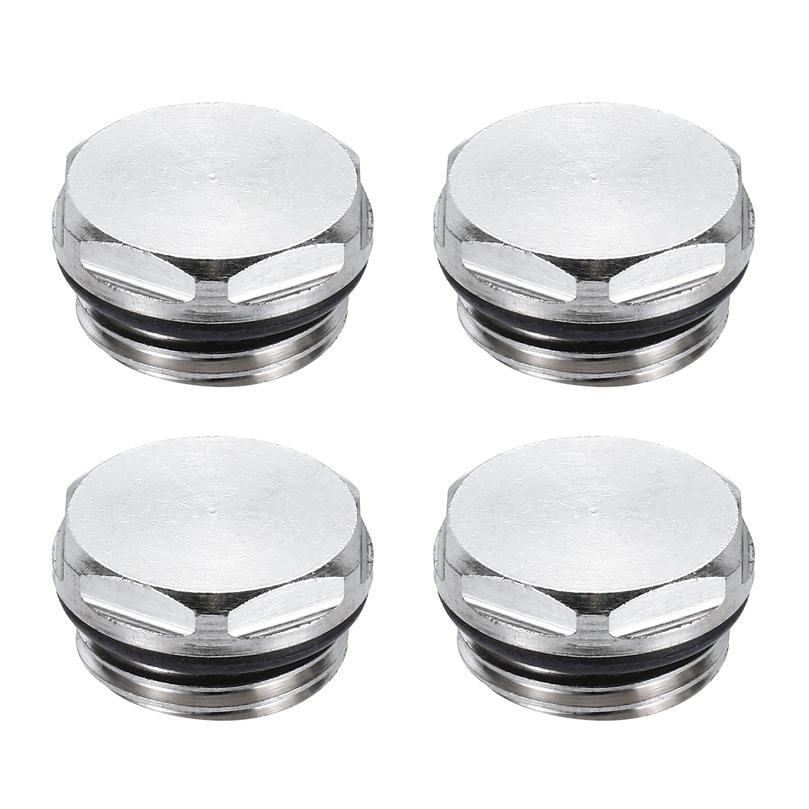 3Pcs 1" BSP Blank Cap Manual Radiator Air Vent Bleeder Plugs, Silver