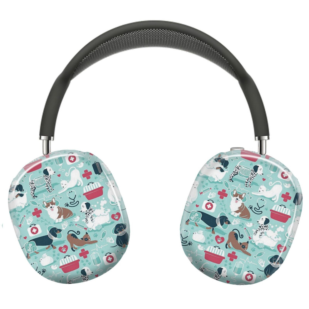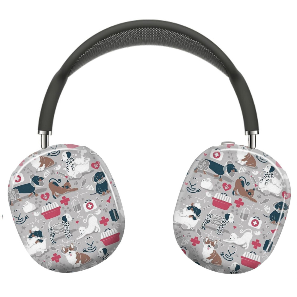(Veterinary Medicine, Happy And Healthy Friends Grey Red Details Navy Blue White And Brown Cats Dogs ) Protective Cover for AirPods Max Headphones Aes