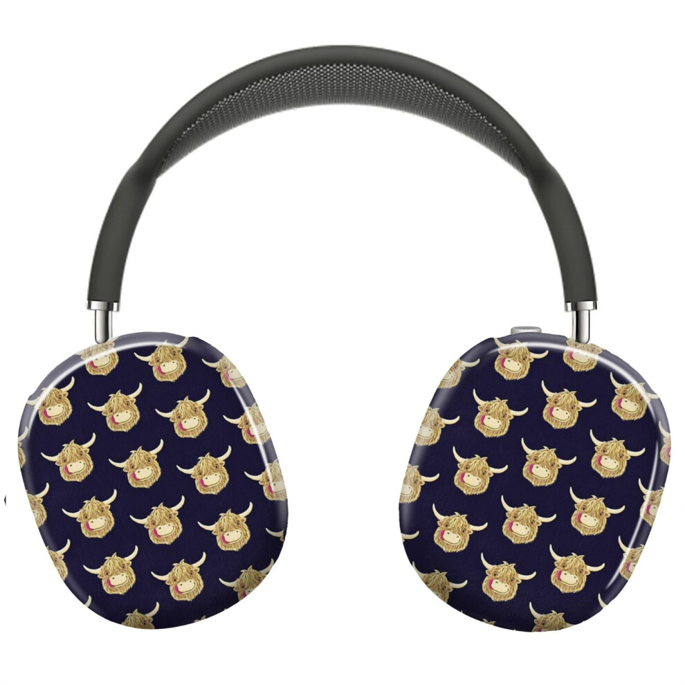 (Happy Kids Scottish Highland Cow_8741) Protective Cover for AirPods Max Headphones Aesthetic Print Snap On Cases