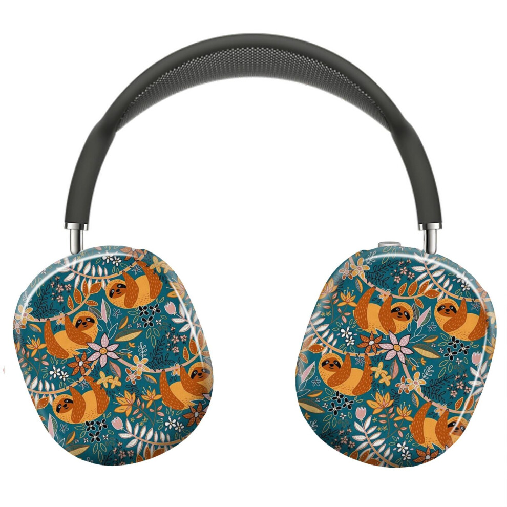 (Happy Boho Sloth Floral _5212) Protective Cover for AirPods Max Headphones Aesthetic Print Snap On Cases