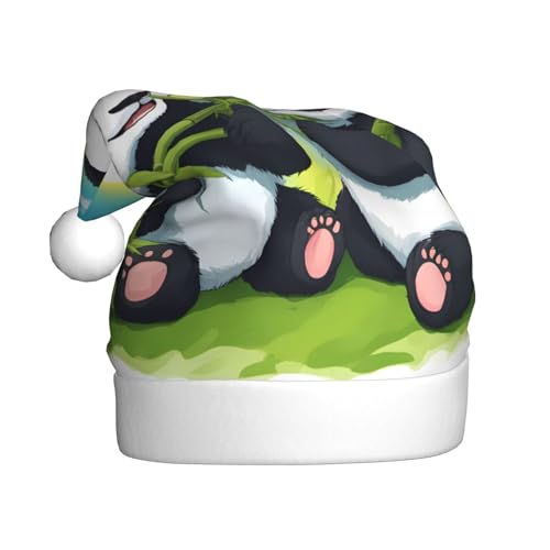 Adult Plush Hat, Two Happy Pandas Print Design, Soft and Skin-Friendly, Not Tight, Suitable for Holiday Wear. Black