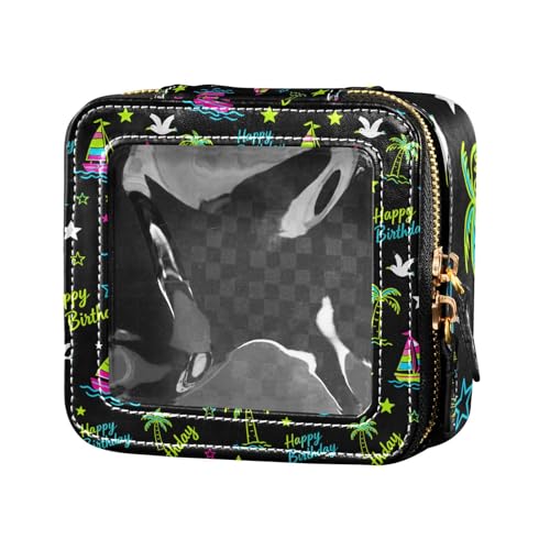 Happy Birthday Neon Green Seagull Boat Coconut Tree Clear Makeup Bag for Purse Skin Care Bag for Women