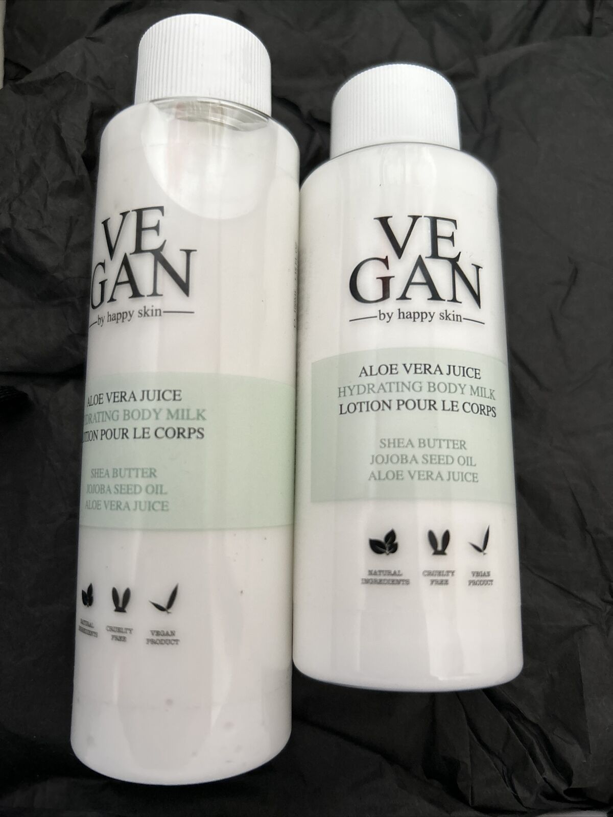 VEGAN By Happy Skin Aloe Vera Juice Hydrating BODY MILK 100ml x 2 RRP £35each