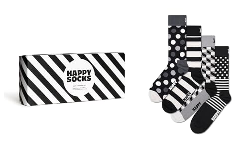 Happy Socks, 4-Pack Gift Box Crew Socks, Classic Black & White Socks Gift Set for Men and Women, Size 36-40