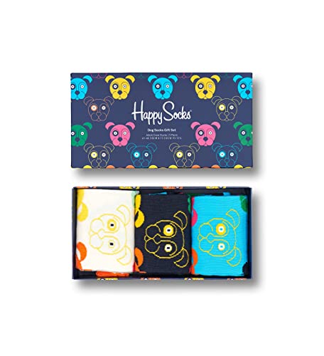 Happy Socks, 3-Pack Gift Box Crew Socks, Dogs Socks for Men and Women, Mixed Dog Socks Gift Set, Size 41-46