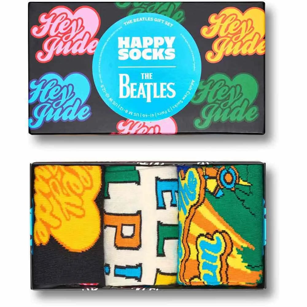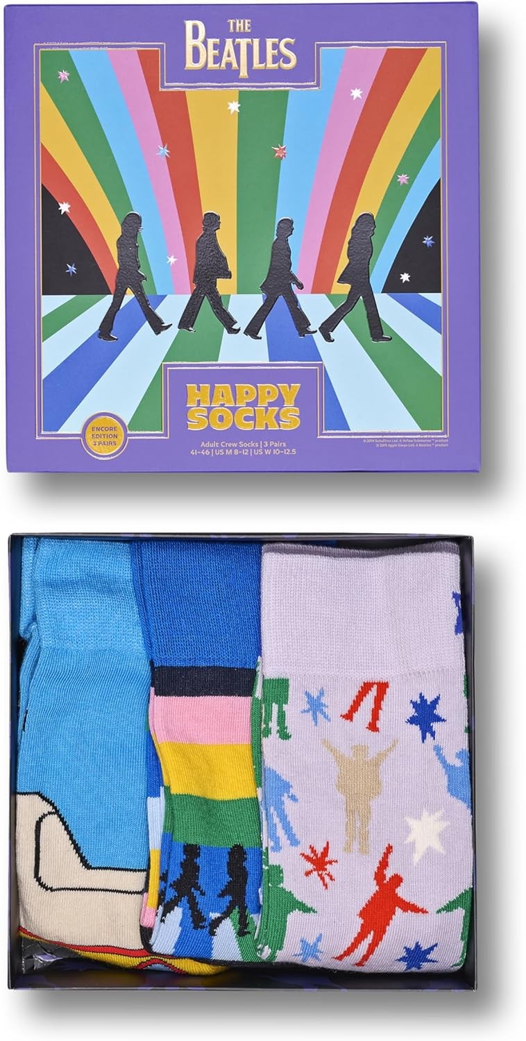 Happy Socks The Beatles Gift Set with 3 Pairs Sustainable Cotton Socks - Fun and Colourful Socks for Music Fans, 3-Pack Beatles FW24, 36-40