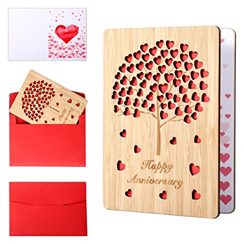 Wooden Happy Anniversary Card, Handmade Wooden Greeting Cards Happy Valentines Day Cards Christmas Birthday Wedding Anniversary Cards for Husband Wife Girlfriend Boyfriend Parent Couple
