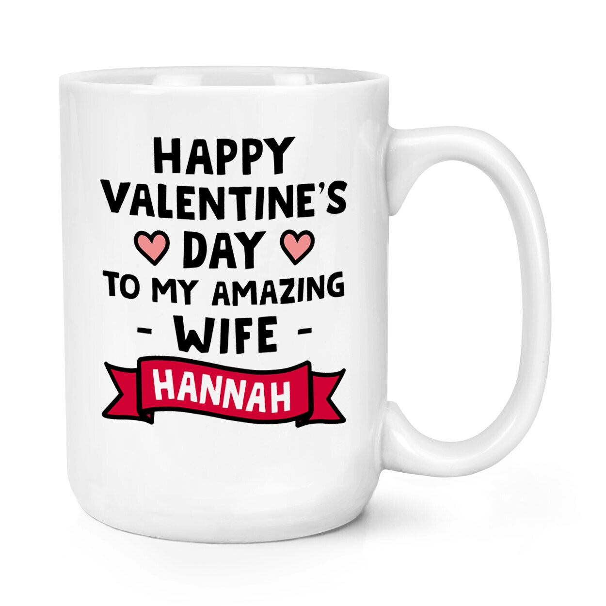 Personalised Happy Valentine's Day To My Amazing Wife 15oz Large Mug Cup Love