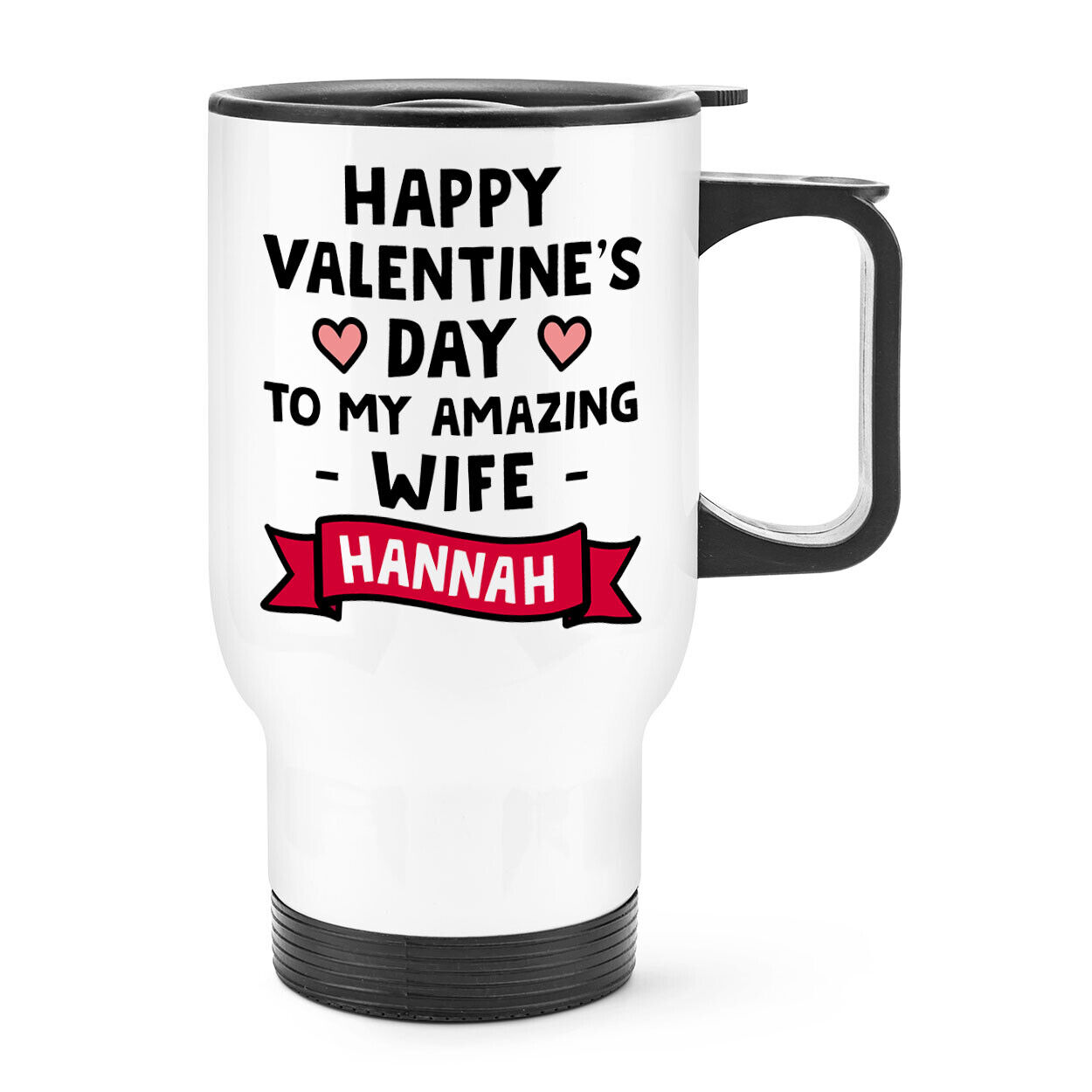 Personalised Happy Valentines Day My Amazing Wife Travel Mug Cup Handle Love
