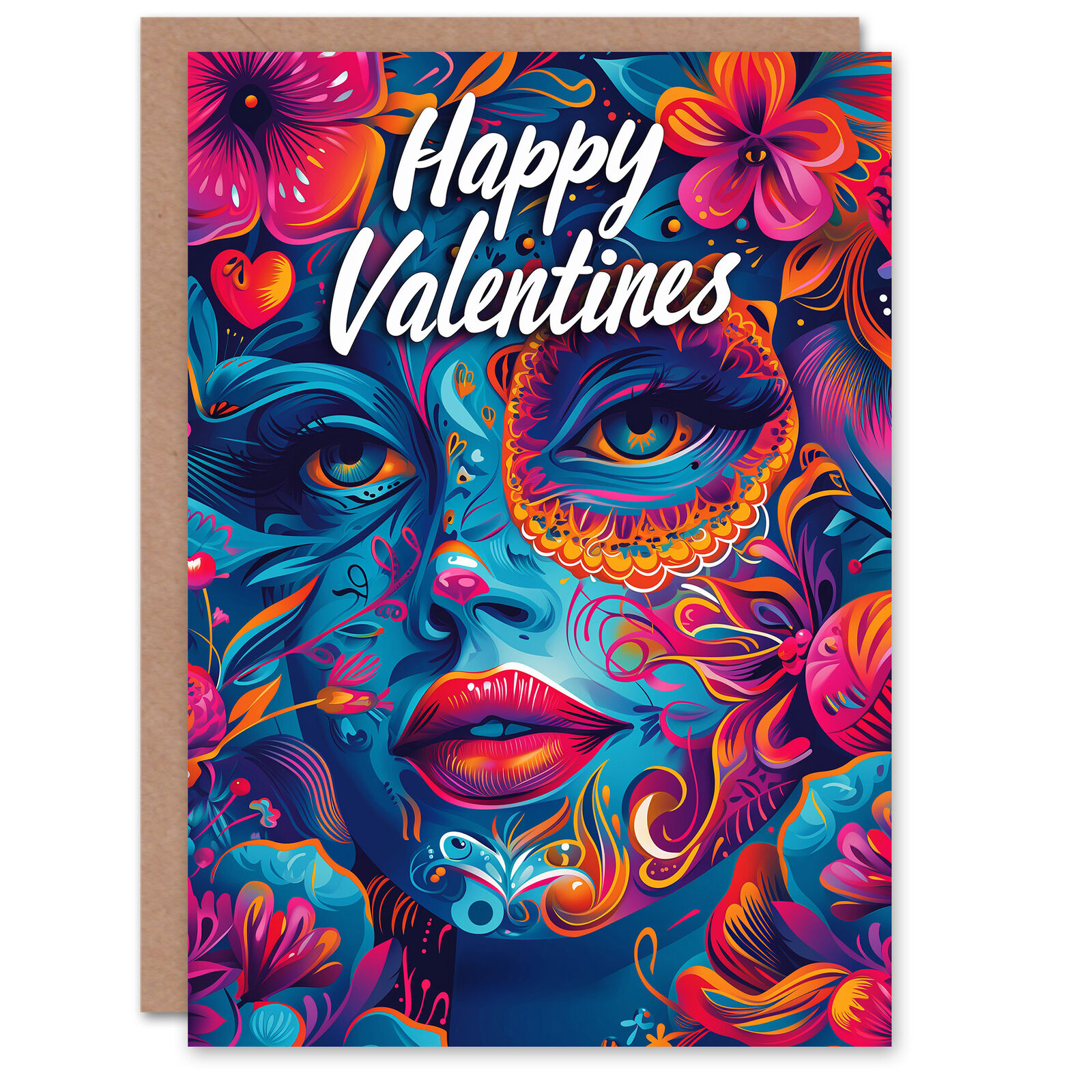 Valentines Day Greeting Card Happy Valentines Sugar Skull Floral For Her Wife
