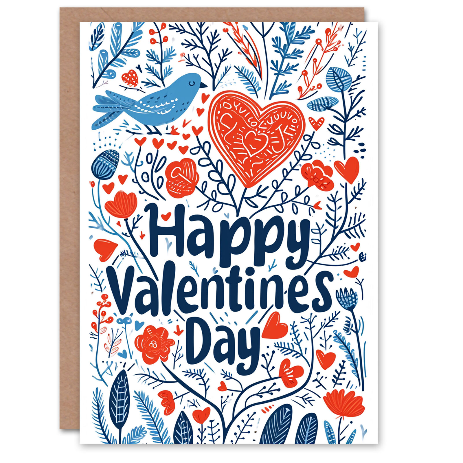 Valentines Day Greeting Card Happy Valentines Day Boho Folk Bird For Her Wife