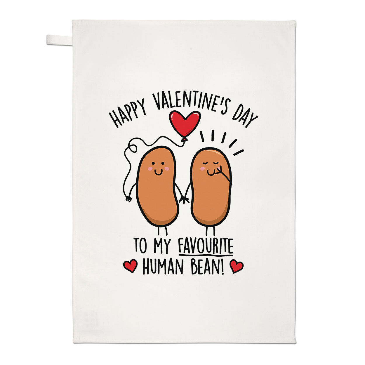 Happy Valentines Day To My Favourite Human Bean Tea Towel Girlfriend Wife