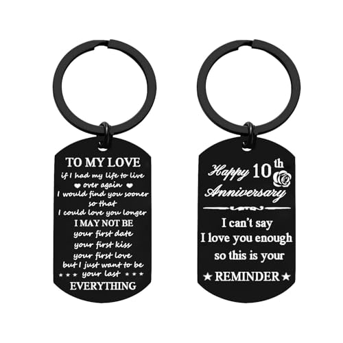 Nimteve Anniversary Keychain Gifts for Him Her Valentine's Day Gifts Happy Wedding Anniversary for Husband Wife Happy Anniversary Keychain for Boyfriend Girlfriend (10th Anniversary Keychain)