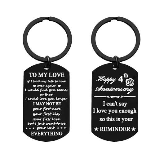Nimteve Anniversary Keychain Gifts for Him Her Valentine's Day Gifts Happy Wedding Anniversary for Husband Wife Happy Anniversary Keychain for Boyfriend Girlfriend (4th Anniversary Keychain)