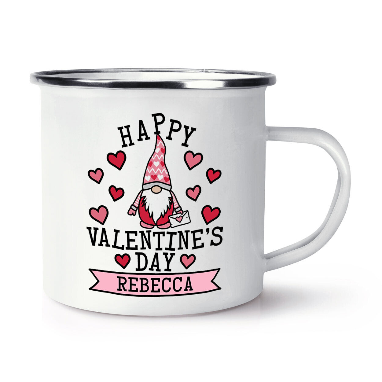 Personalised Happy Valentines Day Gonk Gnome Enamel Mug Cup Girlfriend Wife Love