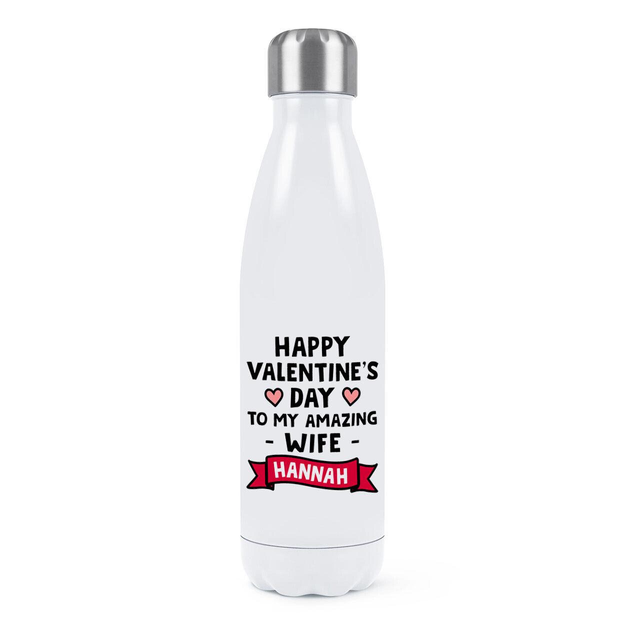Personalised Happy Valentines Day My Amazing Wife Double Wall Water Bottle Love