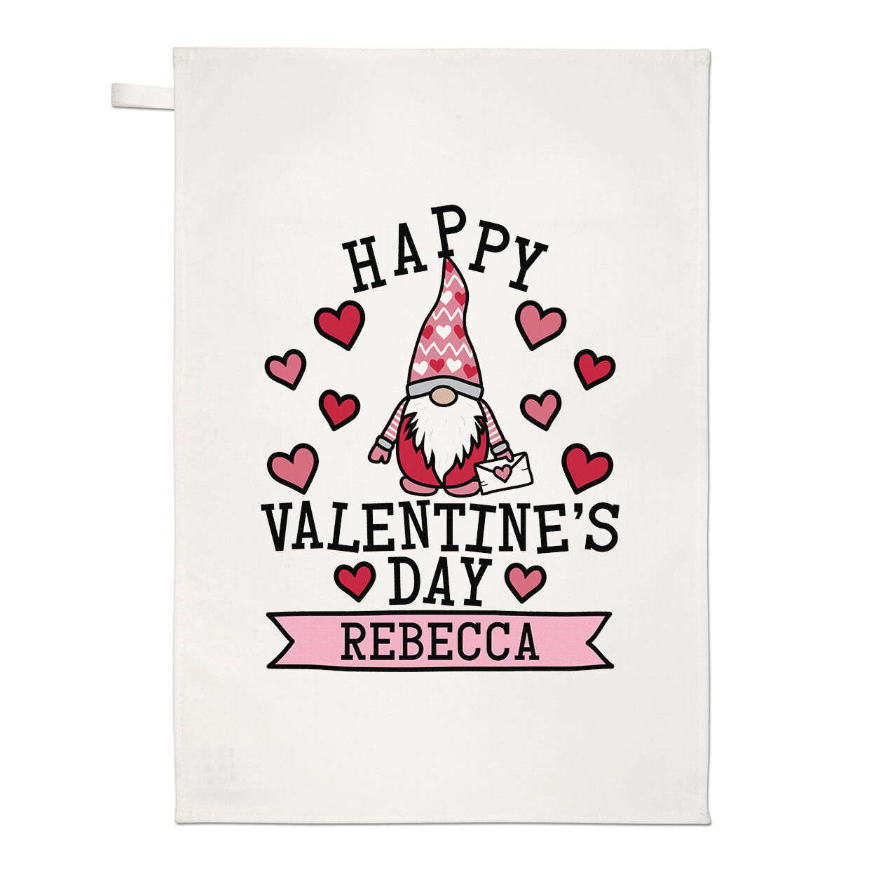 Personalised Happy Valentine's Day Gonk Gnome Tea Towel Girlfriend Wife Love