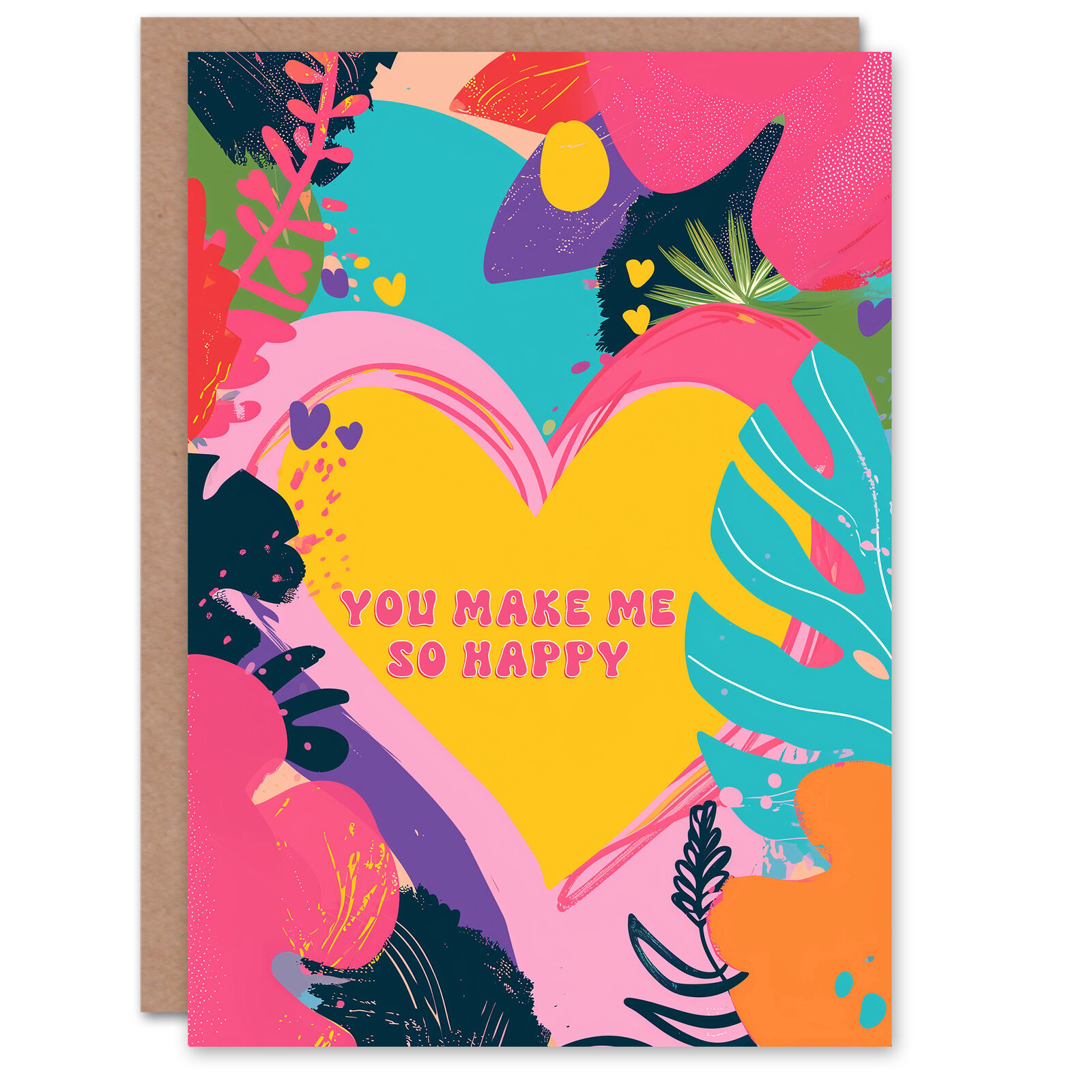 Valentines Day Greeting Card Make Me So Happy Tropical Floral For Her Wife