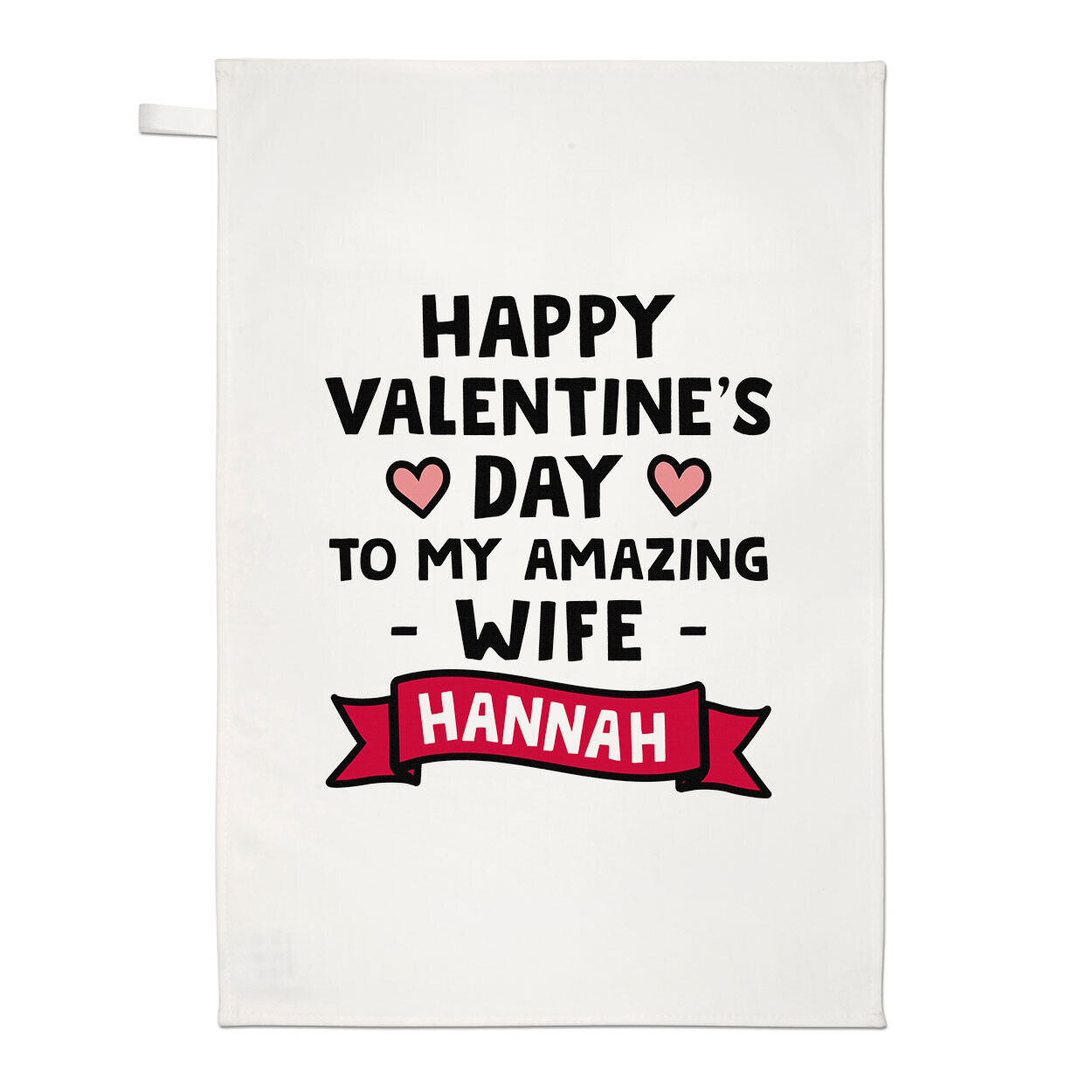 Personalised Happy Valentine's Day To My Amazing Wife Tea Towel Love
