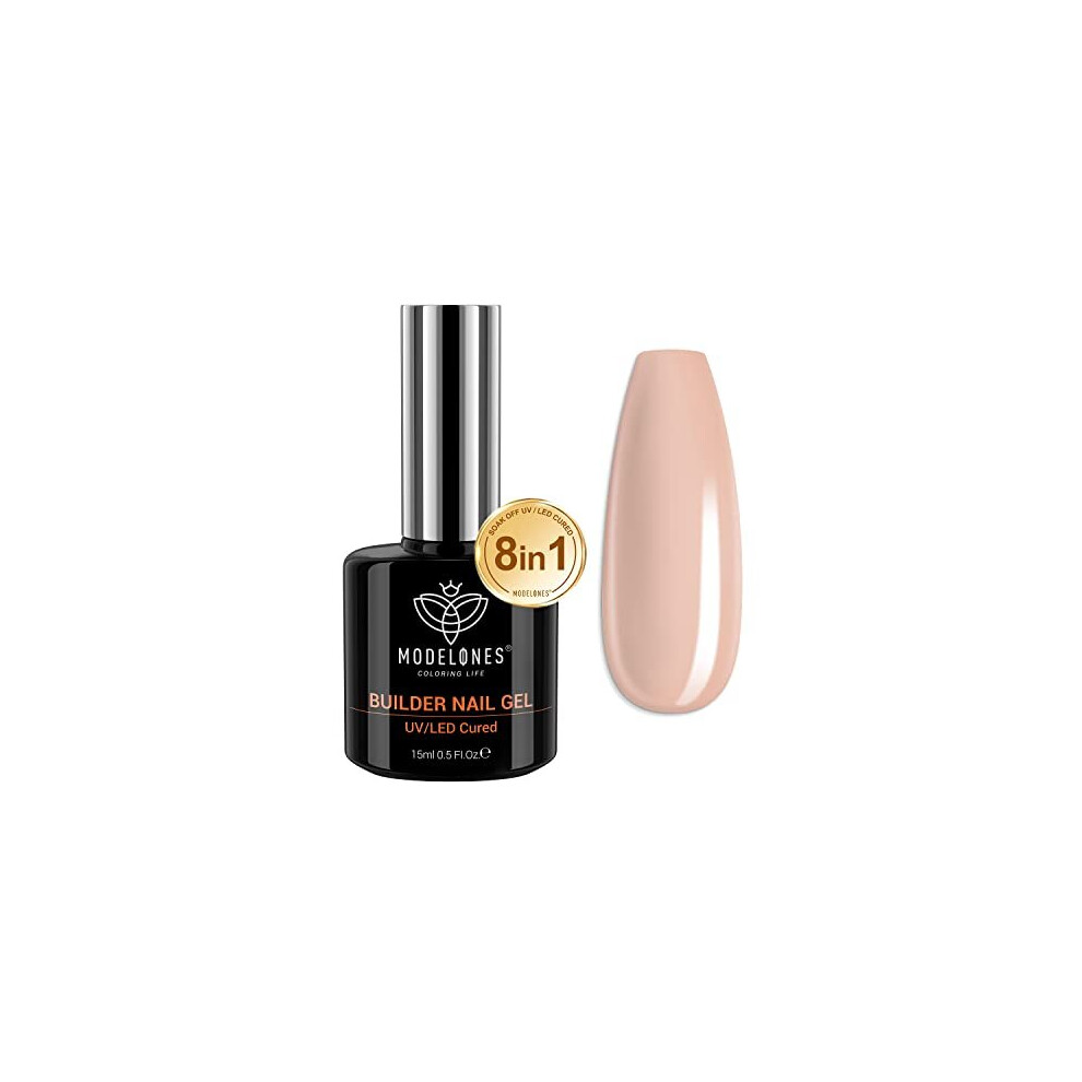 modelones Gel Nail Polish Builder Nail Gel, 8-in-1 Nude Pink Builder Gel, Hard Gel Builder for Nails Strengthener Extension Gel Base Coat Rhinestone False Nail Tips Glue Gel in a Bottle 15ML Hard Gel