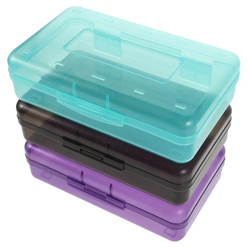 DIYEAH 3pcs Pencil Case with Lid: Colored Plastic Pen Box Organizer - Large Capacity & Stackable -Hard Brush Container for Classroom School Office Supplies