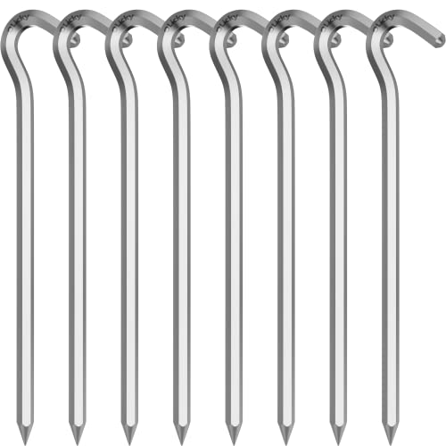 KAHEIGN 8Pcs Heavy Duty Tent Pegs, 20CM High Strength Forged Steel Camping Tent Stakes with Hook and Hole for Outdoor Trip Hiking Gardening Large Hard Ground Rocky