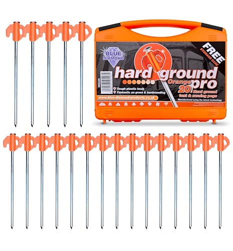 Blue Diamond Heavy Duty Tent Pegs - 20 Pack Hard Ground Tent Pegs, Camping Pegs for Awnings, Gazebos, Outdoor Use - Galvanized Steel (Carry Case)