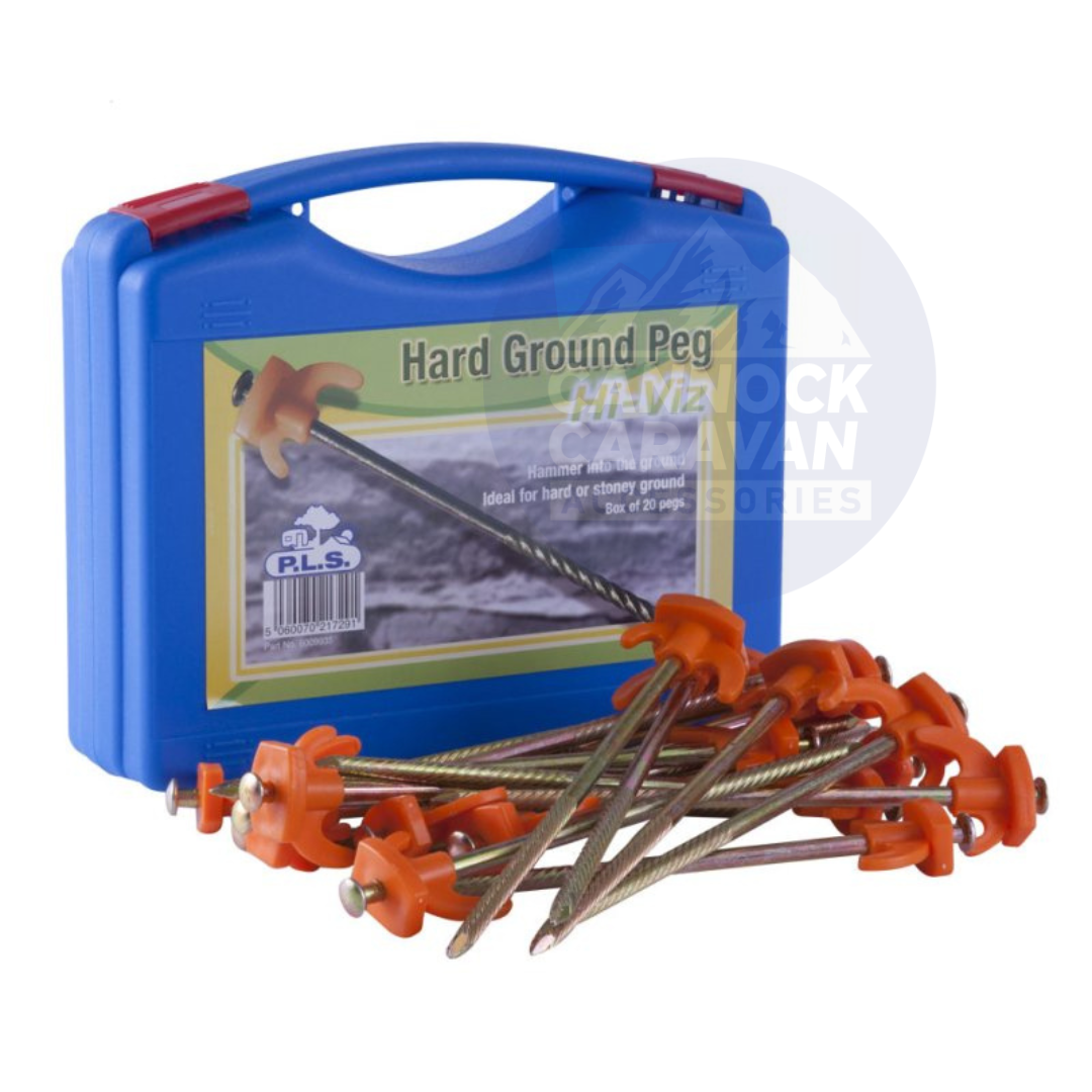 Box Of 20 PLS Hard Ground Awning Camping Tent Pegs With Hi-Viz Plastic Hooks