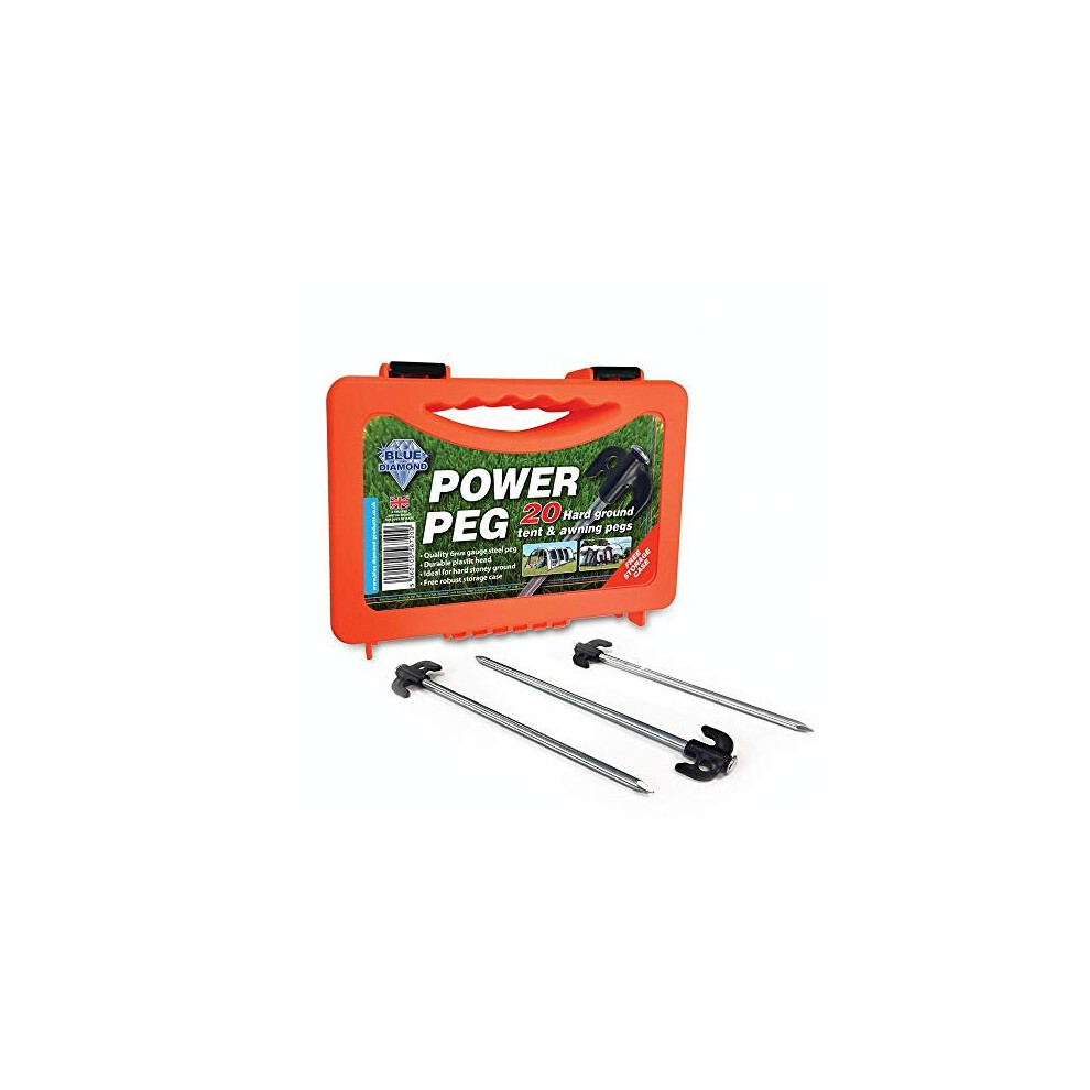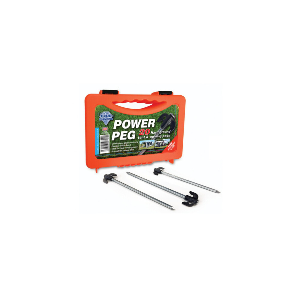 Blue Diamond POWER Pegs Hard Ground Tent & Awning Pegs x 20 With Plastic Storage Case