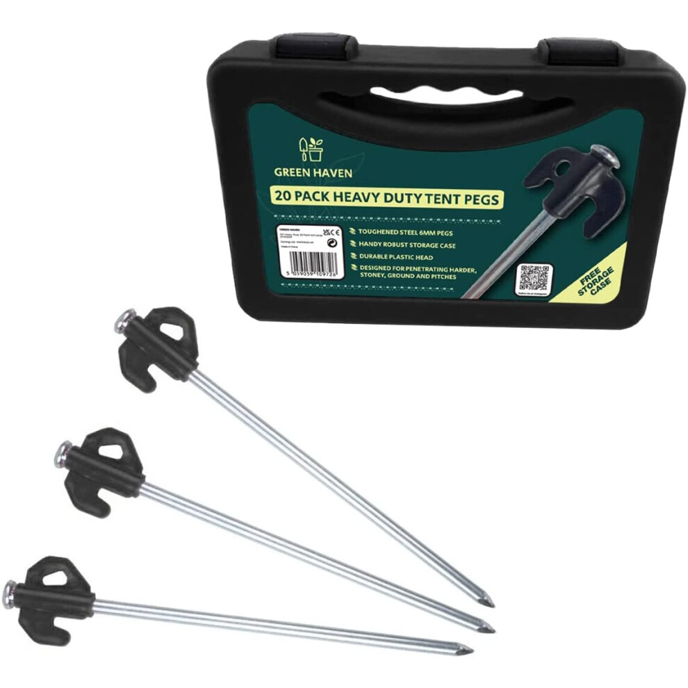 GREEN HAVEN 20 Pack Galvanised Stainless Steel Hard Ground Tent Pegs with Storage Case â Heavy Duty Tent Pegs & Awning Pegs |...