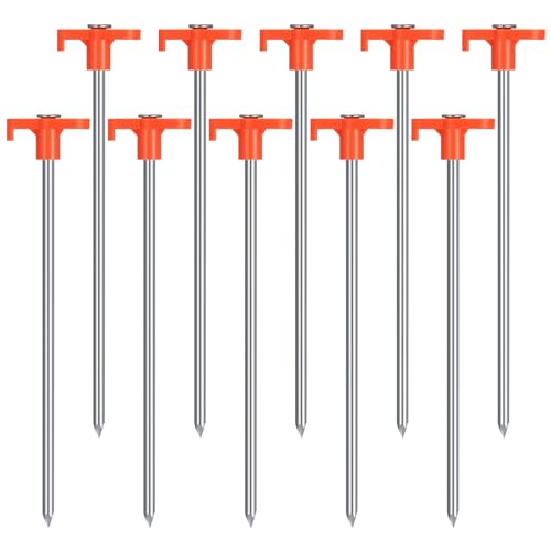 Gdfnmogo T Type Tent Pegs Heavy Duty Spiral Ground Stakes Iron and Plastic Camping Canopy Accessories for Hard Soil or Ice with Strong Wind(10pcs)