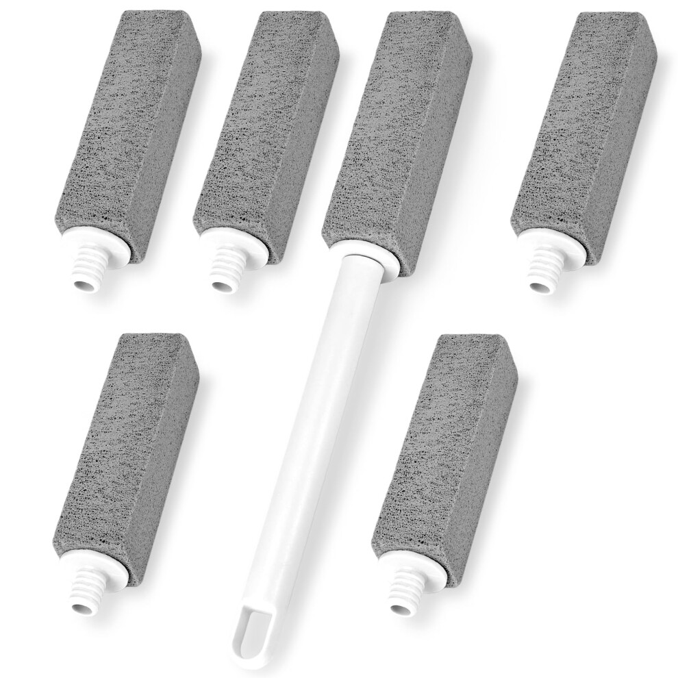 Pumice Stone Toilet Bowl Cleaner with Extra Long Handle, Replaceable Rim Limescale Cleaning Stones Stick Refills, Hard Water Stain Remover Brush for