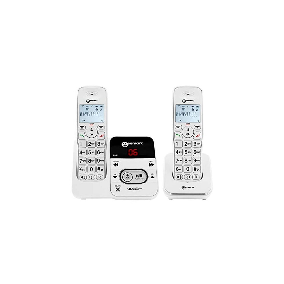 Geemarc Amplidect 295-2 Amplified (30dB) Cordless Twin Pack Telephones - Answering Machine & Caller ID - Phone for the Hard of Hearing with Loud