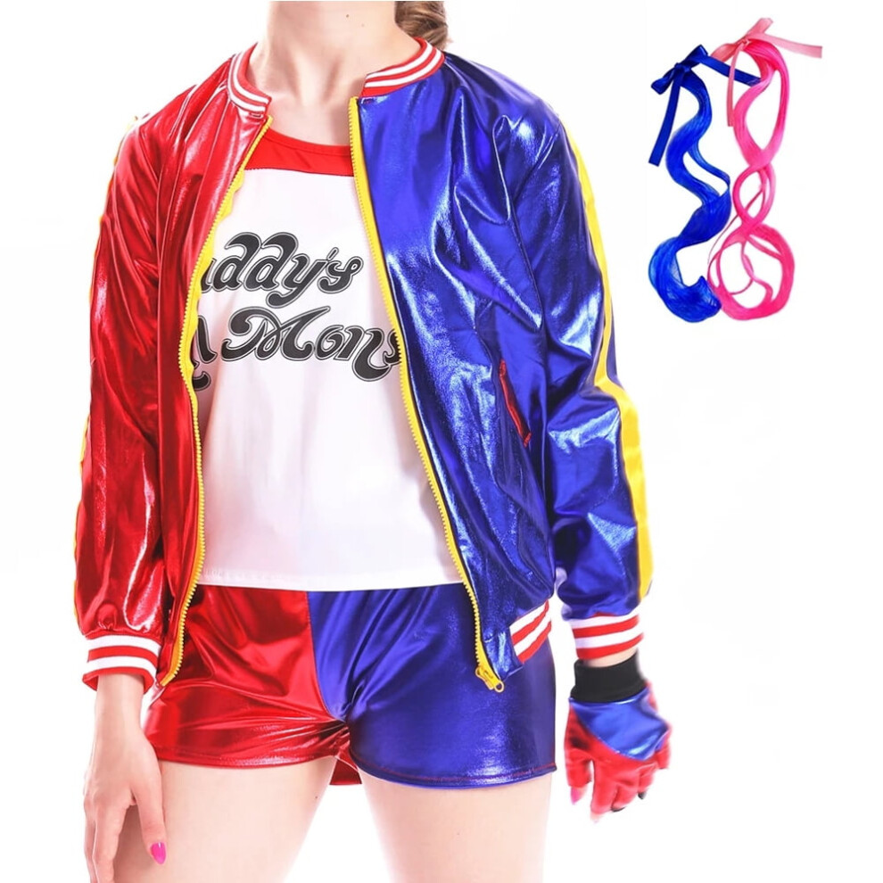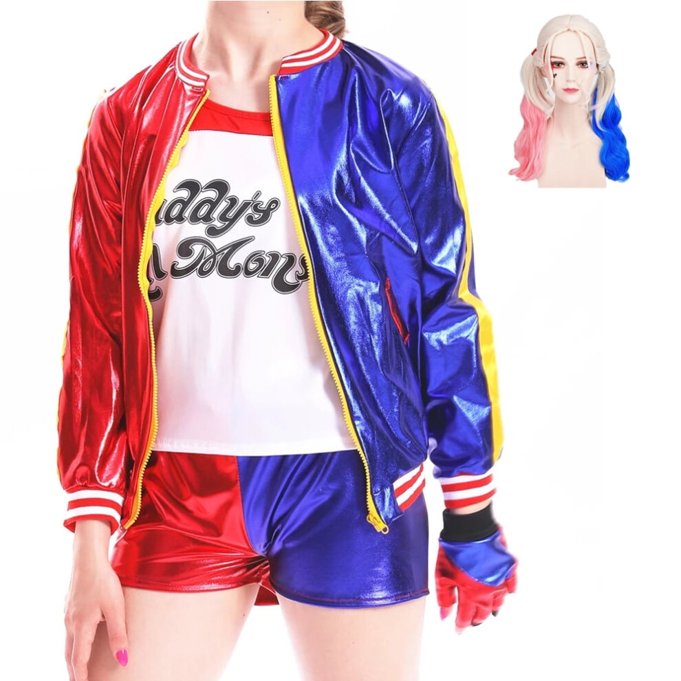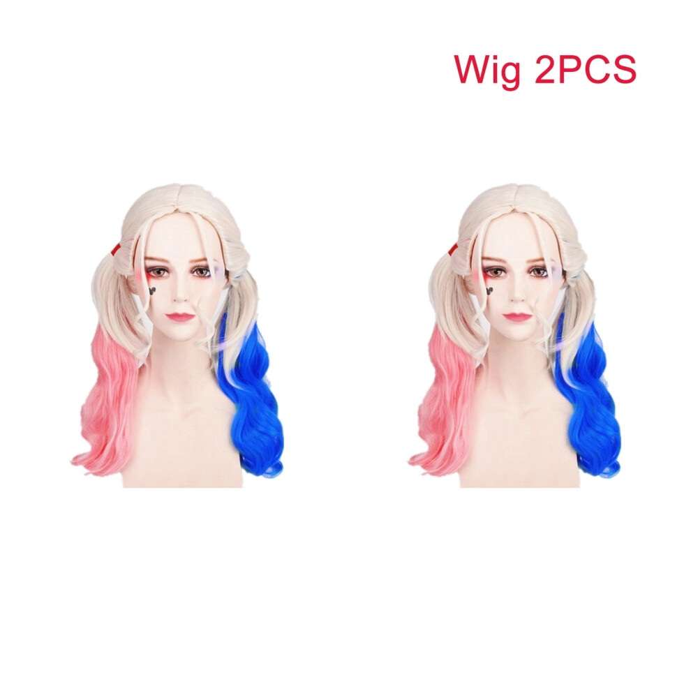 (wigs, One Size) MAVLLY Harley Quinn Costume for Girls Cosplay Suicide Harleen Quinzel Kids Girls Quinn Squad T Shirt Joker Jacket Halloween Costume