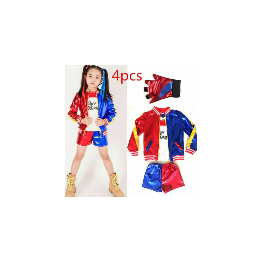 (150) Kids Girls Suicide Squad Harley Quinn Cosplay Coat Fancy Dress Costume Outfit