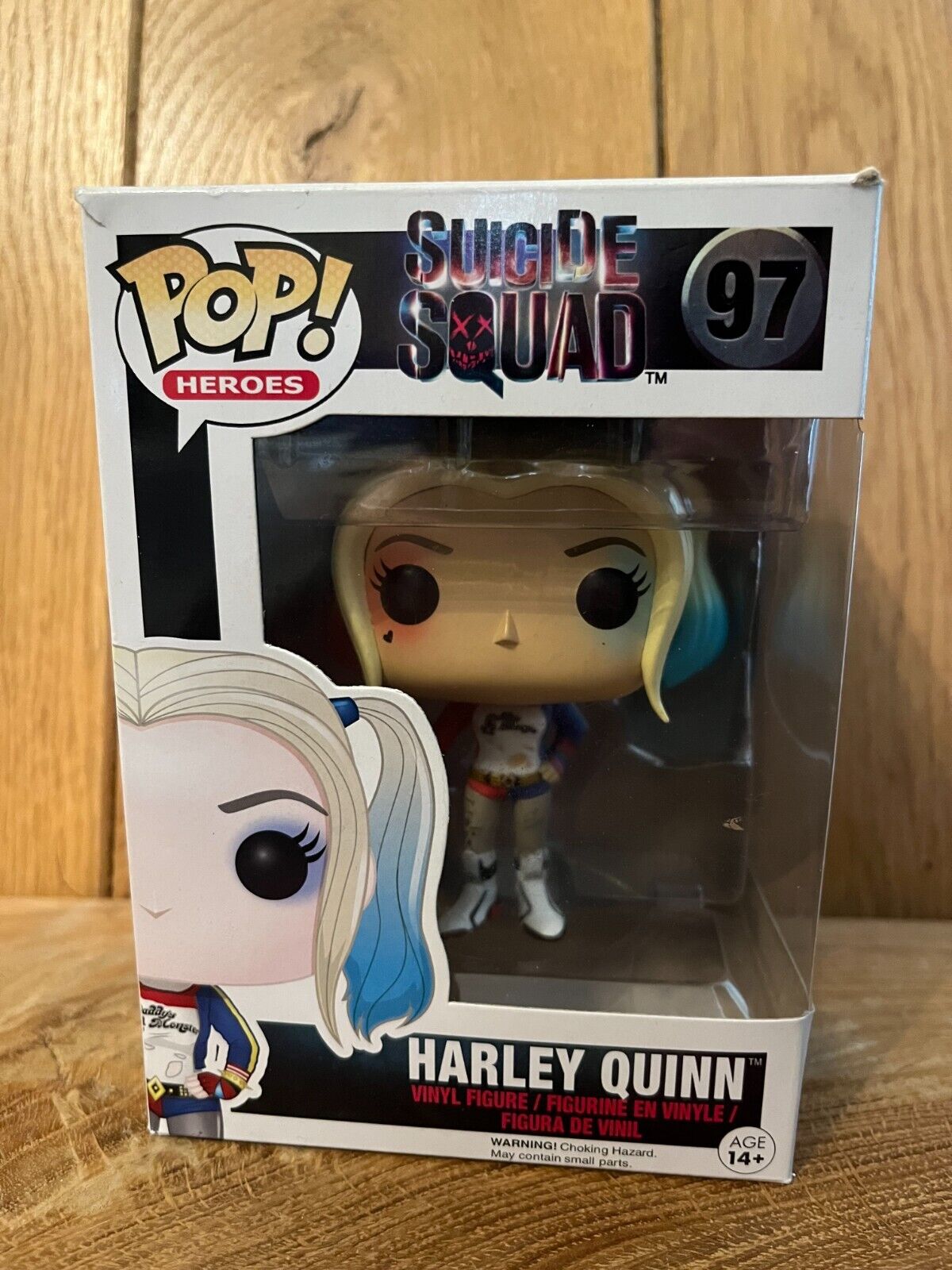 Funko Pop! Heroes No 97 Harley Quinn Vinyl Figure boxed Damaged (A03)