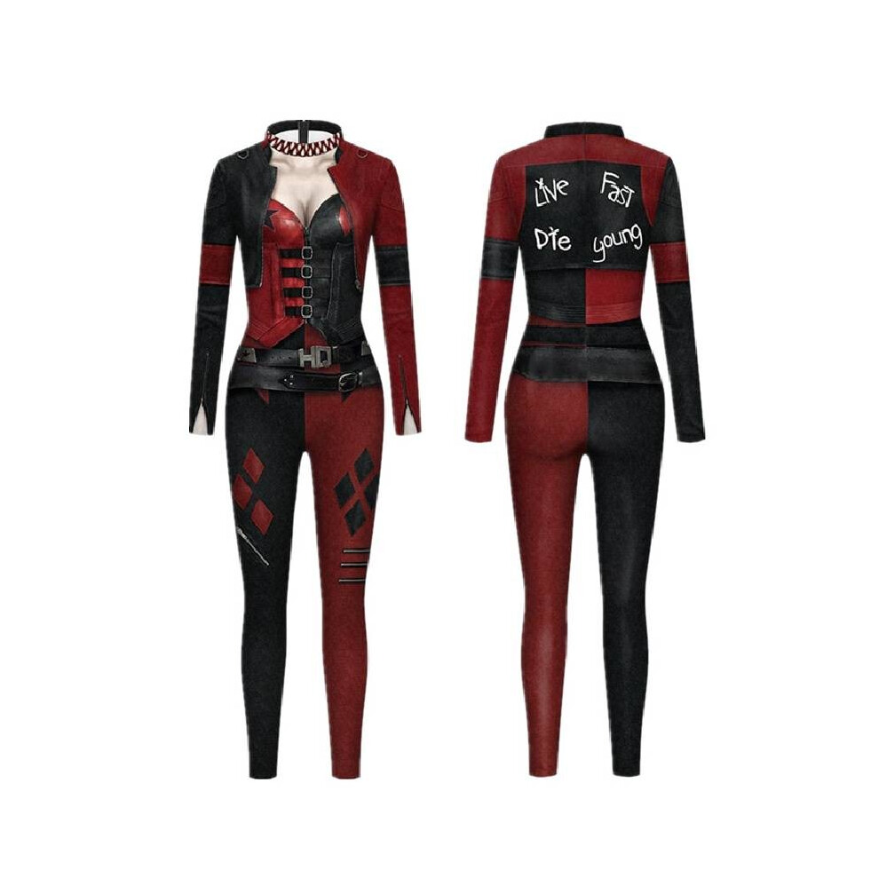 (S) Women Harley Quinn Halloween Party Cosplay Costume Jumpsuit Elastic Bodysuit