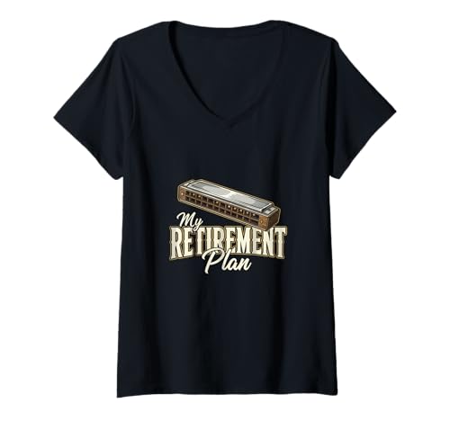 Women's My Retirement Plan Harmonica Music Blues Harmonica Player V-Neck T-Shirt