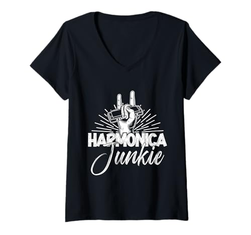 Women's Harmonica Musican Junkie Harmonica V-Neck T-Shirt