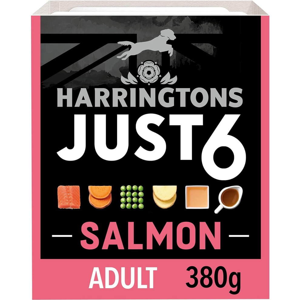 Harringtons Just 6 Complete Grain Free Hypoallergenic Salmon & Veg Wet Adult Dog Food 380g (Pack of 8) - In A Tasty Gravy