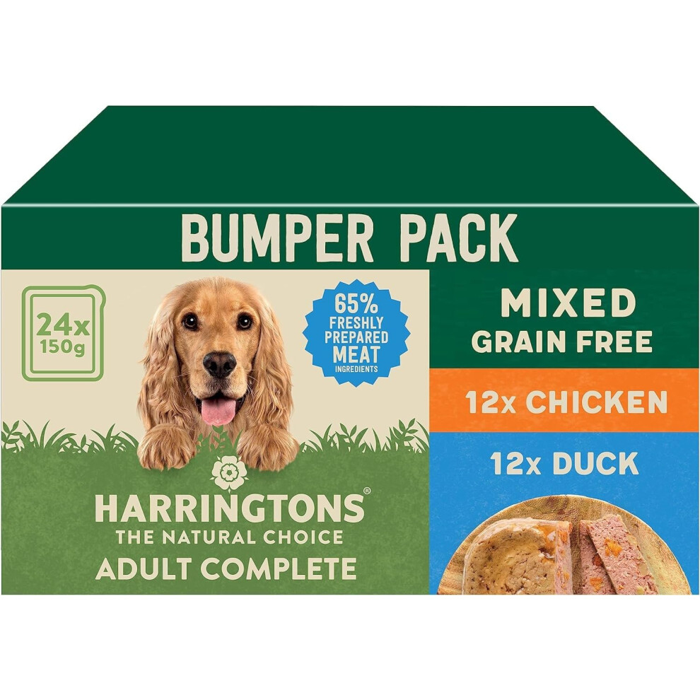 Harringtons Complete Wet Tray Grain Free Hypoallergenic Adult Dog Food Mixed Pack 24x150g - Chicken & Duck - Made with All Natural Ingredients
